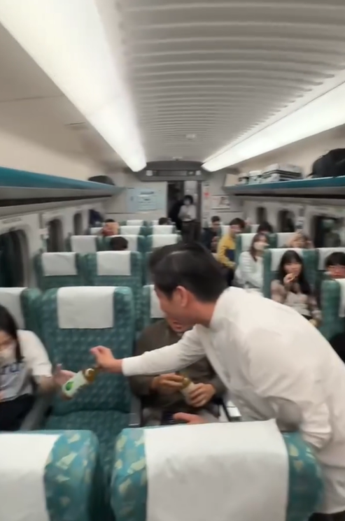 根據《ETtoday新聞雲》、《三立新聞網》報導,有網友24日在Treads上傳一段影片,指出在搭乘高鐵時有名身穿白衣的男子,突然站起來宣布要請全車廂的人喝飲料,「今天台灣贏日本了,我剛排隊哭太多次,希望把感動留下來,請我們這車廂的人喝飲料!」不僅如此,他還激動舉起雙手大喊:「台灣真的太棒了!」其他乘客也立即拍手歡呼。