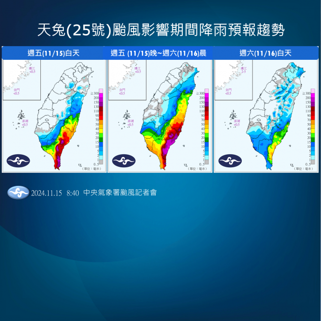 關於全台屆時的天氣狀況,她指出,今上午降雨區域包含花蓮以南、高雄以南地區,下午後則會朝北部擴張,若是今日下半天至明清晨的區間,則會延伸為花蓮以南、高雄以南區域降雨,台東恆春為局部性豪雨;花蓮、屏東平地、綠島蘭嶼則為局部大雨。到了明日白天至下半天,則要看颱風減弱、移動進度等要素才能判定。此外,根據標準,台東縣山區在明下午2點前符合停班課標準,風力部分則為恆春半島。