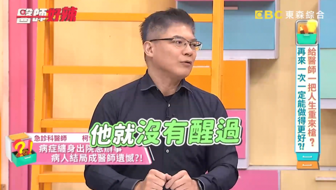根據《ETtoday》報導,急診科醫師柯世祐在節目《醫師好辣》中分享遇到個案,一名男子因喉嚨劇痛掛急診,表示喉嚨很痛、講話時口水已經吞不下去,快速判斷他罹患「急性會厭炎」,儘管醫師向他強調病況危急,建議留院治療,但男子堅決要離院,攔不住只能讓他離開,20分鐘後醫院突廣播地下2樓停車場有人需要急救,一去正是剛剛離院的男子。