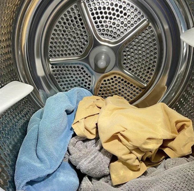 我們把洗完的衣服直接放進烘乾機,設定好以后烘乾,拿出來基本上就可以穿了。