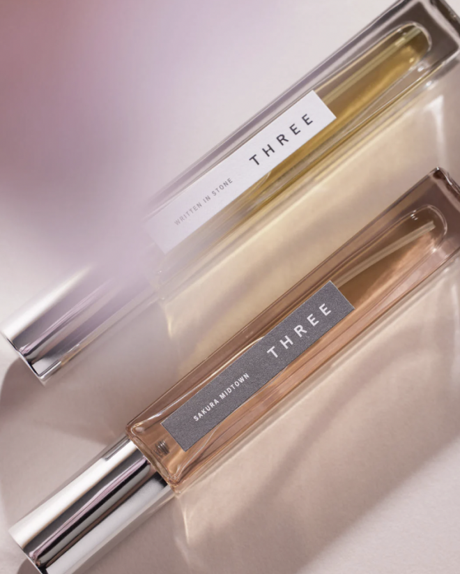 THREE SAKURA MIDTOWN 城中之櫻充滿療癒氣息的 THREE 2024春天以日本櫻花「SAKURA MIDTOWN 城中之櫻」為主題,推出《精油淡香水》、《AROMA護手霜》2款限定商品♡其中春天櫻花獨家香氛《精油淡香水》,以櫻花盛開情景為靈感,運用了粉紅胡椒中和了薰衣草和苦杏仁的甜味,再搭配佛手柑、玫瑰天竺葵和玫瑰的芬芳,後調則帶來雪松的沉穩香氣,成為散發舒服香味的木質花香調。