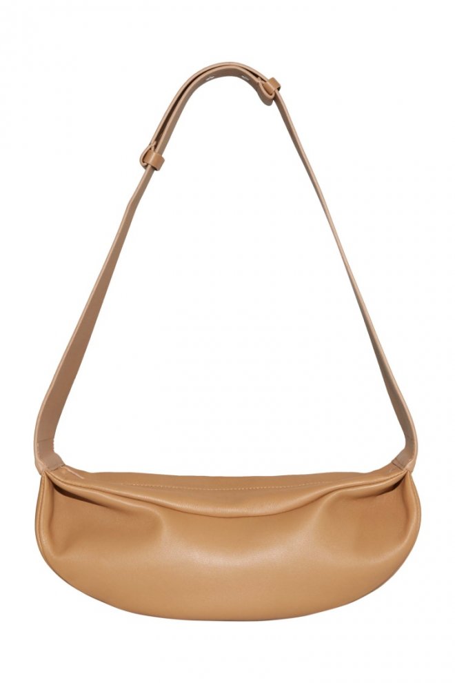 H&M Cos 皮革單肩包Cos的「半月包」將重點放在材料選擇上,使用了羊皮而非尼龍或燈芯絨~透過皮革質感展現出獨特風格,既追求時尚又不失低調!為時尚愛好者提供了另一個簡約又時尚的選擇。