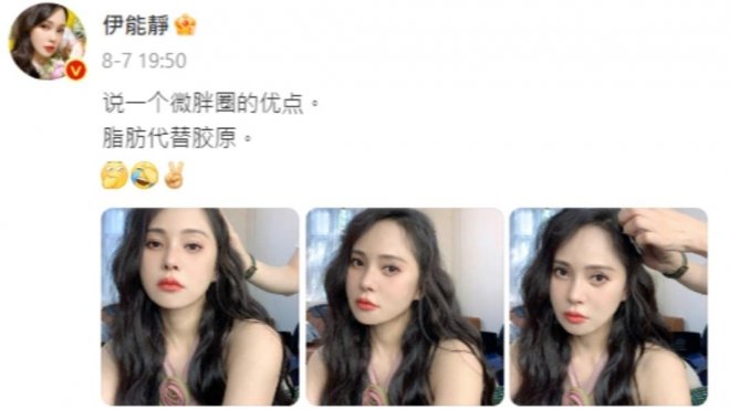 根據《Yahoo奇摩新聞》報導,伊能靜擁有凍齡美貌,是大家心中的「不老女神」,寵粉的她經常透過社群平台分享日常點滴,去年才分享稍稍圓潤的模樣,幽默表示:「說一個微胖圈的優點,脂肪代替膠原。」雖自嘲但整個人狀態好到不行,皮膚白皙水嫩、脖子也看不出歲月的痕跡,然而上個月剛慶生完,伊能靜無奈分享自己胖到人生體重巔峰。