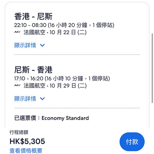 【歐洲】平盤!法國航空/荷蘭皇家航空來回連稅尼斯$5,305起、曼徹斯特$5,490起、慕尼黑$5,523起、米蘭$5,529起、羅馬$5,588起、倫敦$5,765起、蘇黎世$5,909起,包23kg行李,12月31日前出發