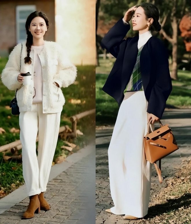 不同的穿衣風格,會直接決定了褲裝的色彩,如果是比較溫柔的穿衣風格,建議大家可以選擇淺色系的褲子。比如燕麥色、米白色、杏色以及奶油白,都很值得去嘗試。淺色系的褲裝,很適合搭配糖果色或者同色系的上衣,給人的感覺非常溫柔舒適。