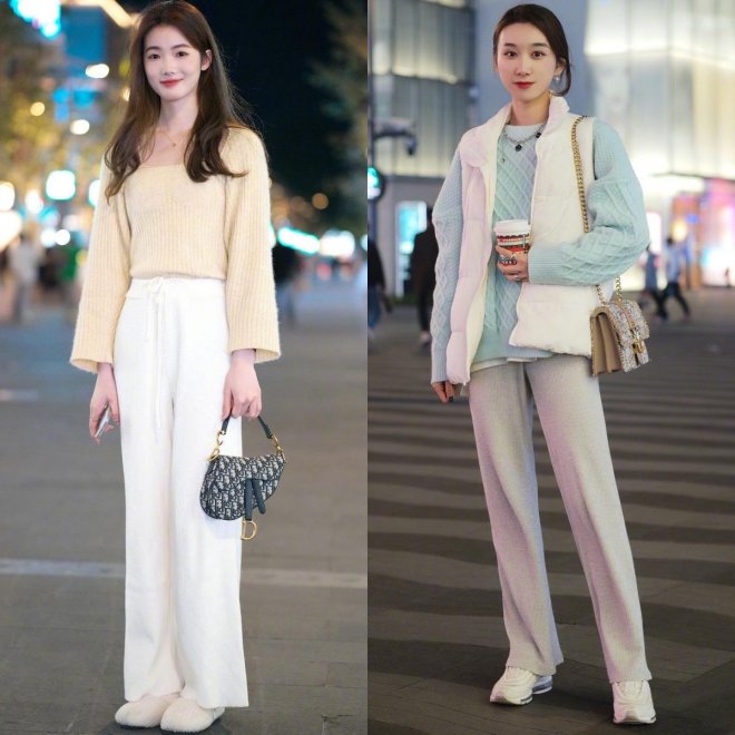 只要整體的色彩運用準確無誤,我們的造型成功率就會高達85%。特別是對於很多膚色暗沉的女性來說,可以嘗試一下糖果色的針織毛衣,在搭配白色或者煙灰色的羊絨闊腿褲,舒適又減齡。