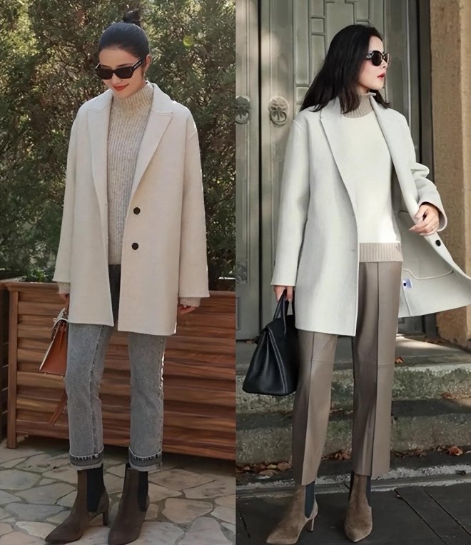 身高不超過160cm的姐妹,千萬不要輕易嘗試拖地褲,相比之下,選擇露出腳踝的九分褲,就算配平底鞋也不會顯矮。不過在搭配九分褲和平底鞋的時候,建議大家可以再穿一雙筒襪進行保暖,不要直接露出腳踝肌膚。