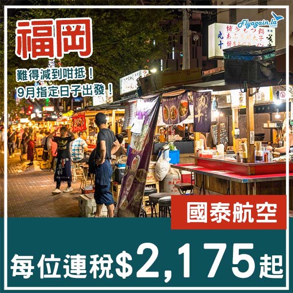 【福岡】極限量平飛!難得減到咁平!國泰航空來回福岡連稅$2,175起!9月頭至9月中出發