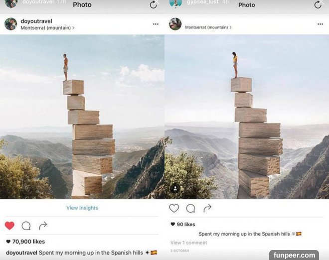 ![]() Jack Morris (@doyoutravel)和Lauren Bullen (@gypsea_lust) 是IG上一對知名的旅遊攝影情侶,粉絲高達200萬。他們時常環遊世界在IG分享美美的圖片。不過,近來他們發現其中一個追隨者IG帳號的情侶,竟然模仿他們去過的景點、穿類似的衣服,拍出一模一樣的照片,就連色調和構圖也大同小異,感覺就是複制貼上的分身! 左邊是原版的照片,右邊是粉絲模仿後的照片 ![]() 幾乎是神還原本來的照片 ![]() ![]() ![]() ![]() ![]() ![]() ![]() ![]() ![]() ![]() 這個程度根本就是在模仿攝影師的一切,讓她感到有點驚恐。雖然說照片是重新拍攝,不能說是侵犯版權,但這樣的行爲讓人感太舒服。不過能做到這種程度的模仿也太厲害了....後來這項消息被揭露後,山寨版的臉書也突然關閉了!只能說這對山寨情侶也算的上一對唯美的變態(還要有錢) 要拍出一樣的照片需要參訪完全相同的景點,還要弄到一樣的衣服,應該是要花費不少。 |