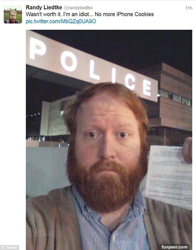 ▼ 從警察局出來的Randy非常沮喪,忍不住表示:「不值得,我就是個傻瓜……以後再也不會有iPhone餅乾了。」