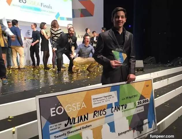 ▼更令人意外的是,他還在今年4月底GSEA「全球學生企業家獎」斬獲頭獎。而讓他贏取巨額獎金的,竟然是一隻胸罩。