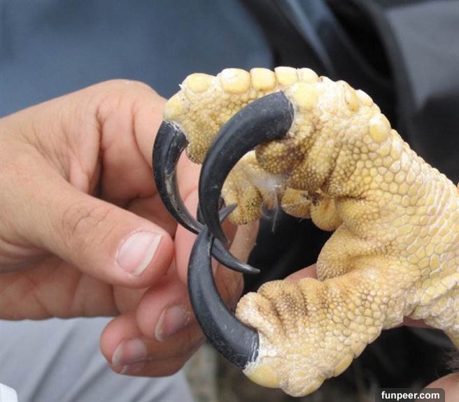 ▼角鵰身體末端這些尖銳的爪子就是牠補食的利器,牠的爪子擁有180公斤以上的握力,能夠在進食前攫取並抓死牠的獵物;角雕的攻擊力被形容如灰熊一樣強大,讓人不難想像牠的厲害之處。