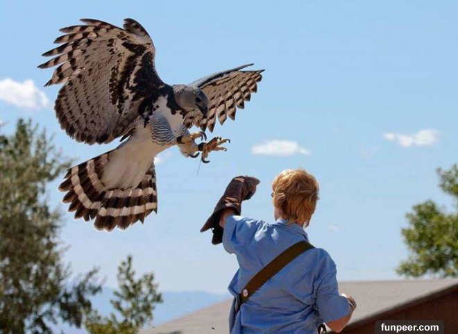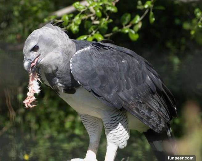 ▼角鵰又稱為哈比鷹,牠是巴拿馬的國鳥,也被至於國徽之中。角雕是目前世上最大又最強悍的鷹類之一,牠可以長到足足一米高,而且有極粗壯的大腳來支撐牠的重量。