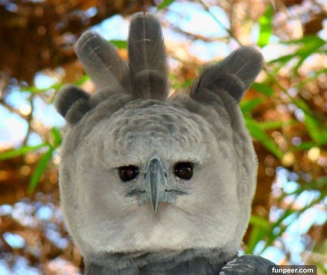 ▼有趣的是,雖然角鵰的側面充滿了帥氣感,但牠的正面看起來卻非常「呆萌」,這樣的反差感也是造成牠在網上成名的原因。