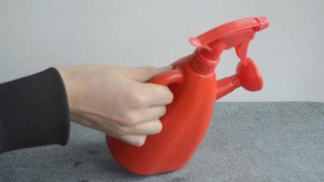 接著再往容器裡倒入一些清水,並且攪拌一下倒入噴壺裡即可。