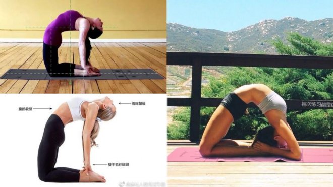 駱駝式瑜伽能防止駝背、擺脫背部贅肉、改善疲勞的脊椎帶來的不適、同時還能瘦小腹,一週三次就能變美。首先跪在墊子上,膝蓋與骨盆同寬,兩手插腰,慢慢身體往後仰,拱起背部把雙手放在左右後腳跟,再慢慢頭頂頂到地板,維持30秒,最後利用腹部、大腿的力量回到開始的位置。