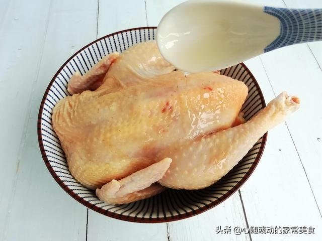 第五步:把雞肉連料汁一起倒入保鮮袋中綁緊,腌制6個小時以上,現在天氣熱,建議大家腌制的時候,放冰箱冷藏,避免雞肉變味,腌制的過程中,時不時給雞肉翻個面,再揉一揉,給雞肉做個按摩,讓雞肉更入味。