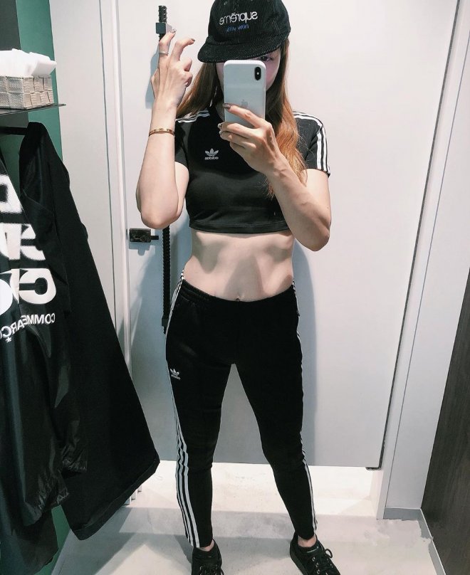 因為持續健身的關係,Kumi的身材一直保持得非常好,完全就是一個少女的體態,還有著性感馬甲線。網友看到Kumi後紛紛表示:「這個地方媽媽我可以」、「生完三個還有這種身材」、「好羨慕她老公」。