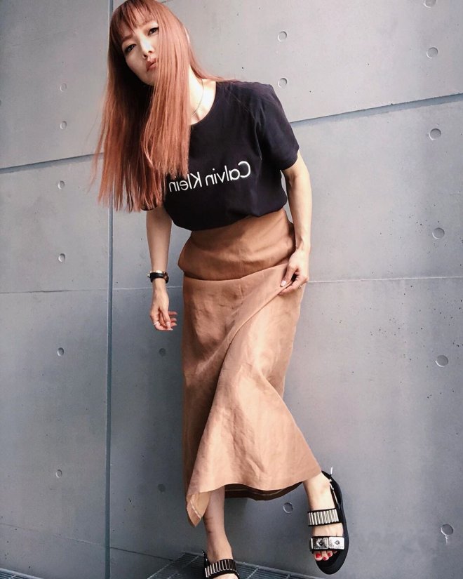 今年已經44歲的Kumi,留著一頭長直髮,本來就長的年輕,配上瀏海造型更是減齡,這身材更是讓人想不到已經是生過三個孩子的媽,最大的女兒也已經高一了,母女站在一起根本就像姐妹一樣。