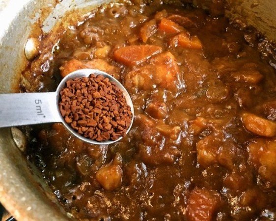 話鋒一轉,北農不藏私公布讓咖哩飯更濃郁的小秘訣,在咖哩中加入少許巧克力,可以讓整體濃度提升,過去也有網友分享一招,加入即溶咖啡粉,讓咖哩吃起來有更豐富的層次感。