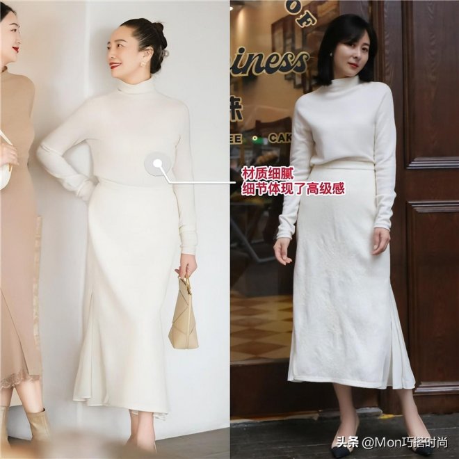 白色是一種經典又耐看的顏色,然而就是因為這樣低調的白色,卻總是被人忽略。其實白色是很容易展現出貴氣感的顏色,但要注意,如果你想要看上去皮膚更白皙有光澤,並且讓氣質看上去更高級和優雅,不要穿冷白色,最好選擇這種珍珠暖白色。色調偏暖,這樣的顏色穿在身上更溫柔更低調,而且對於膚色暗沉的中年女性而言也是比較好駕馭的。
