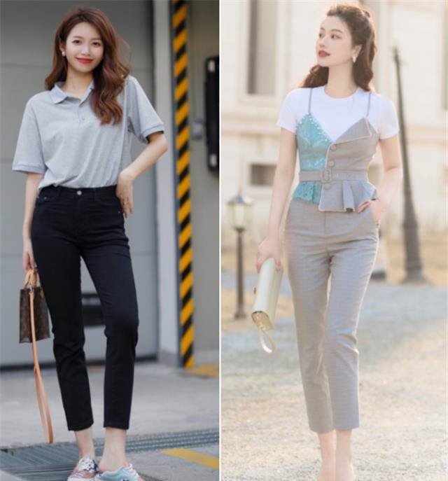 最好選擇過膝不過踝的夏季褲,九分的長度就能夠滿足這一需求,幫助我們露出了腳踝,更能凸顯大長腿。