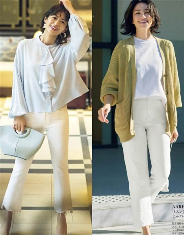 比如我們在穿白色褲裝的時候,上面就可以選擇一些彩色系的單品來展現出層次,幫助你打造出活力滿滿的感覺。