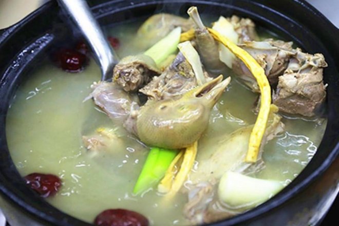 3.砂鍋中加入底油,放入蔥姜炒香,倒入鴿子煸炒2分鐘左右去除水氣,肉塊炒香以後加入清水、沙姜,党參,紅棗,大火燒開後轉小火燉煮一個小時,讓營養融入到湯裡面。