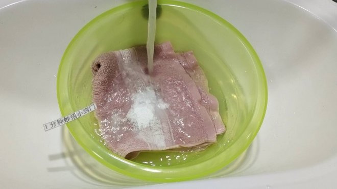 第三個用途,我們可以利用食用鹽來清潔毛巾,我們在容器裡面倒入一些食用鹽,食鹽具有一定的消毒殺菌作用。接著倒入一些食用鹼,食用鹼可以清潔毛巾上面的一些污漬。然後我們在容器裡面倒入一些溫水,利用溫水來溶解食鹽,食用鹼,浸泡個十分鐘左右,毛巾經過浸泡之後,再拿來清洗,這樣洗過的毛巾就會比較柔軟,不會硬邦邦的。