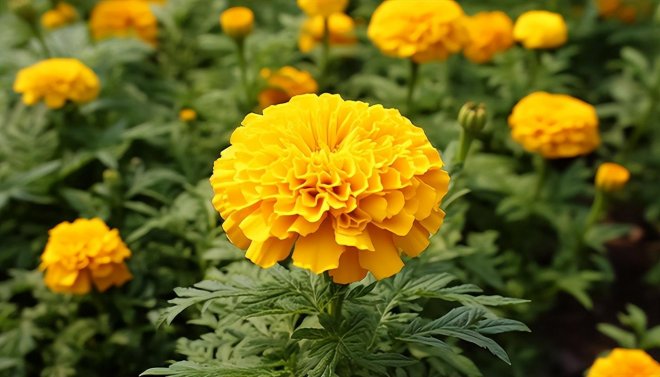 萬壽菊,一種擁有美麗而顯著花朵的植物,其金黃色的花朵在各種環境中都能引人注目。它的花朵不僅形色各異,而且散發出一種對蛇類具有明顯驅趕作用的香味。