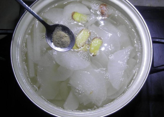 3、白蘿蔔做湯,放調料有訣竅。在用白蘿蔔做湯時,味道鮮美好喝的訣竅之一,就是放調料也很有訣竅,很多朋友用白蘿蔔做湯時,經常會再放點味精雞精,其實這樣會,但其實味精雞精,會遮蓋住白蘿蔔本身的鮮味,越放越難喝,正確的做法是,白蘿蔔做湯先煎至微黃,加入開水後,只需加入適量的精鹽和胡椒粉即可,其他任何調料不用放,這樣才能喝到,最鮮美的原味。