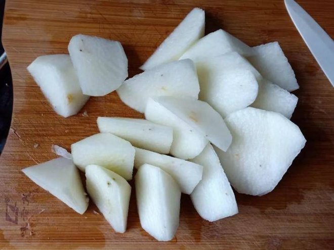 1、白蘿蔔必須下鍋煎。用白蘿蔔做湯,味道鮮美的首要訣竅就是,白蘿蔔一定要下鍋煎,如果不煎,白蘿蔔的鮮味就揮發不出來,正確的做法是,把白蘿蔔切成塊,然後鍋裡留點底油,把白蘿蔔一起下鍋,開小火煎至表面,微微發黃,用白蘿蔔燉出的湯,才鮮美無比,這一個訣竅,朋友們,一定要記好。