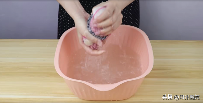 咱們就可以接著用手揉搓了,之後再用清水過一遍就可以了。如此一來,毛巾就會被我們洗得很乾凈了。