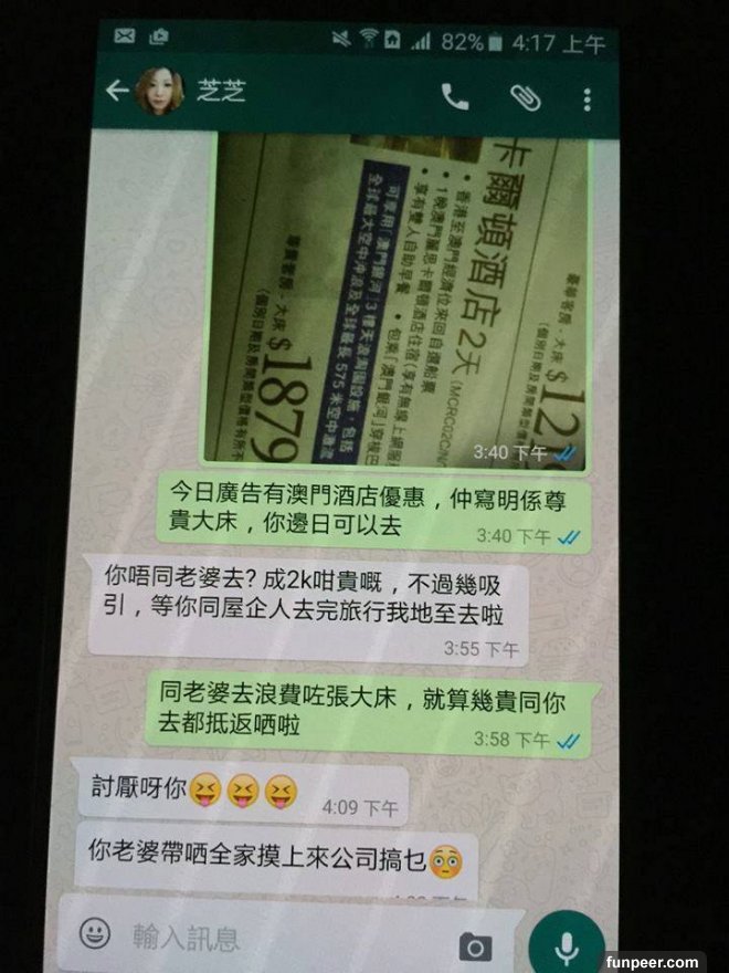又瘋傳一輯情慾 whatsapp, 今次男女主角係同事關係, 而且彼此都結咗婚, 有埋小朋友.