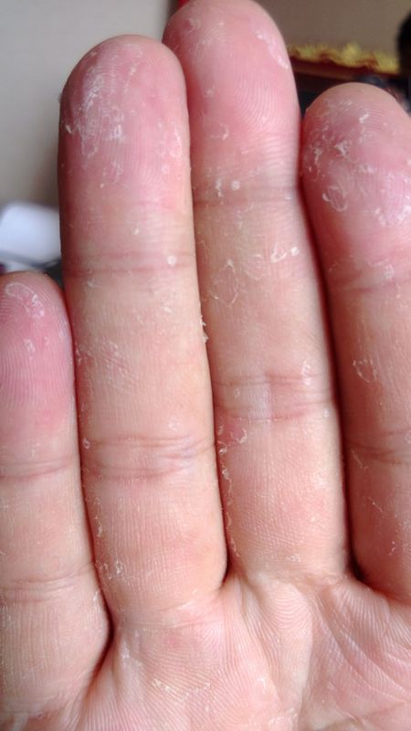 一是剝脫性角質松解症,手指反覆脫屑、表皮剝脫,鱗屑脫落後是正常表皮。少部分人可有輕微癢痛、乾燥不適感。常伴掌心多汗,情緒緊張激動時加重。青年人多發、換季多發,有家族史。