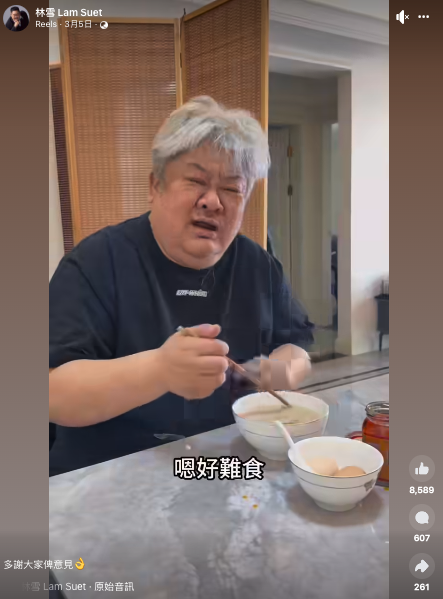 為了鞭策自己,林雪陸續分享居家運動、飲食調整的紀錄短片,只見他與友人一起用腹肌滾輪運動,才做20下就上氣不接下氣,哀嚎:「啊啊啊啊!夠啦夠啦!」隨後整個人倒在地上喘到不行,面色相當猙獰,看起來相當痛苦,緊接著分享午餐改吃麥片粥及水煮蛋,但最後覺得太難吃受不了,還是搭配豆腐乳一起吃,坦言這樣不健康,但為了讓自己撐住,需要循序漸進才能撐得住!