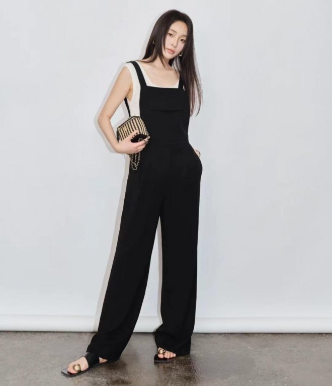 對於40+的女人來說,吊帶褲不僅能夠提升腰線,拉長下半身比例,還能遮蓋腹部的小瑕疵,讓身材看起來更加完美。