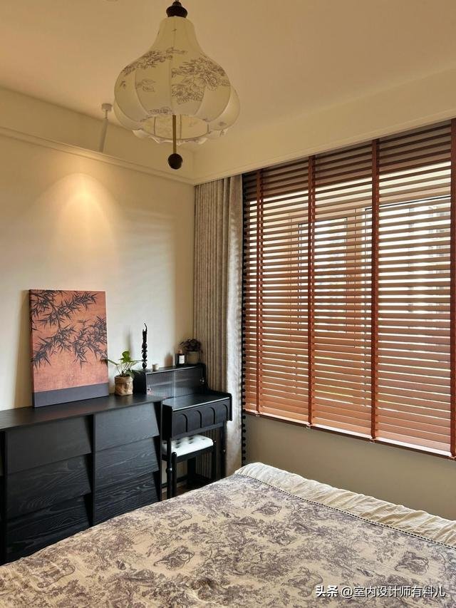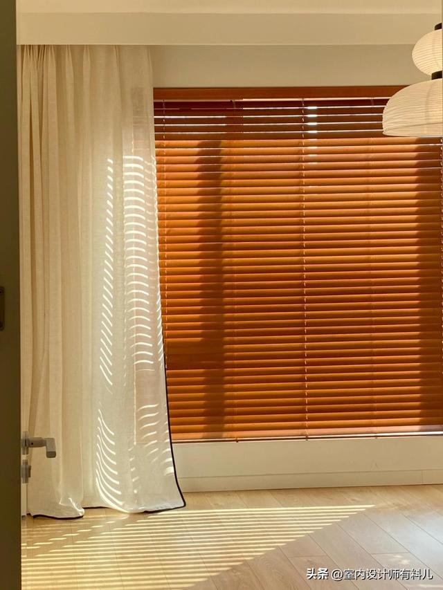 木百葉簾這兩年非常流行,它不僅能夠自由調節光線,還帶有一股自然的溫馨氣息,非常適合卧室、書房等區域。