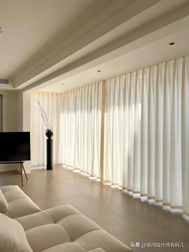 其實,客廳不要布簾,只裝一層紗簾就夠了,這種方案越來越流行,傳統的布簾實際上一年也拉不上一次,而紗簾透光不透人,既能阻擋外界的窺探,又保留了光線的通透感。