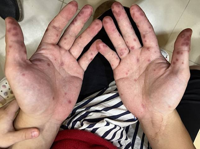 監測今(2024)年腸病毒流行病毒以克沙奇A型為主,另有零星檢出A71型、及D68型病毒,截至目前為止,全國僅有1例是病患感染克沙奇A10型併發重症的病例。要注意的是,腸病毒會以不同症狀表現出來,常見症狀為喉嚨痛、口腔黏膜、四肢出現紅疹(水泡)及發燒,再加上型別多元,若是疱疹性咽峽炎,病徵是咽峽部出現小水泡或潰瘍,若是手足口症,則是在舌頭、牙齦、手掌、腳掌出現小水泡!